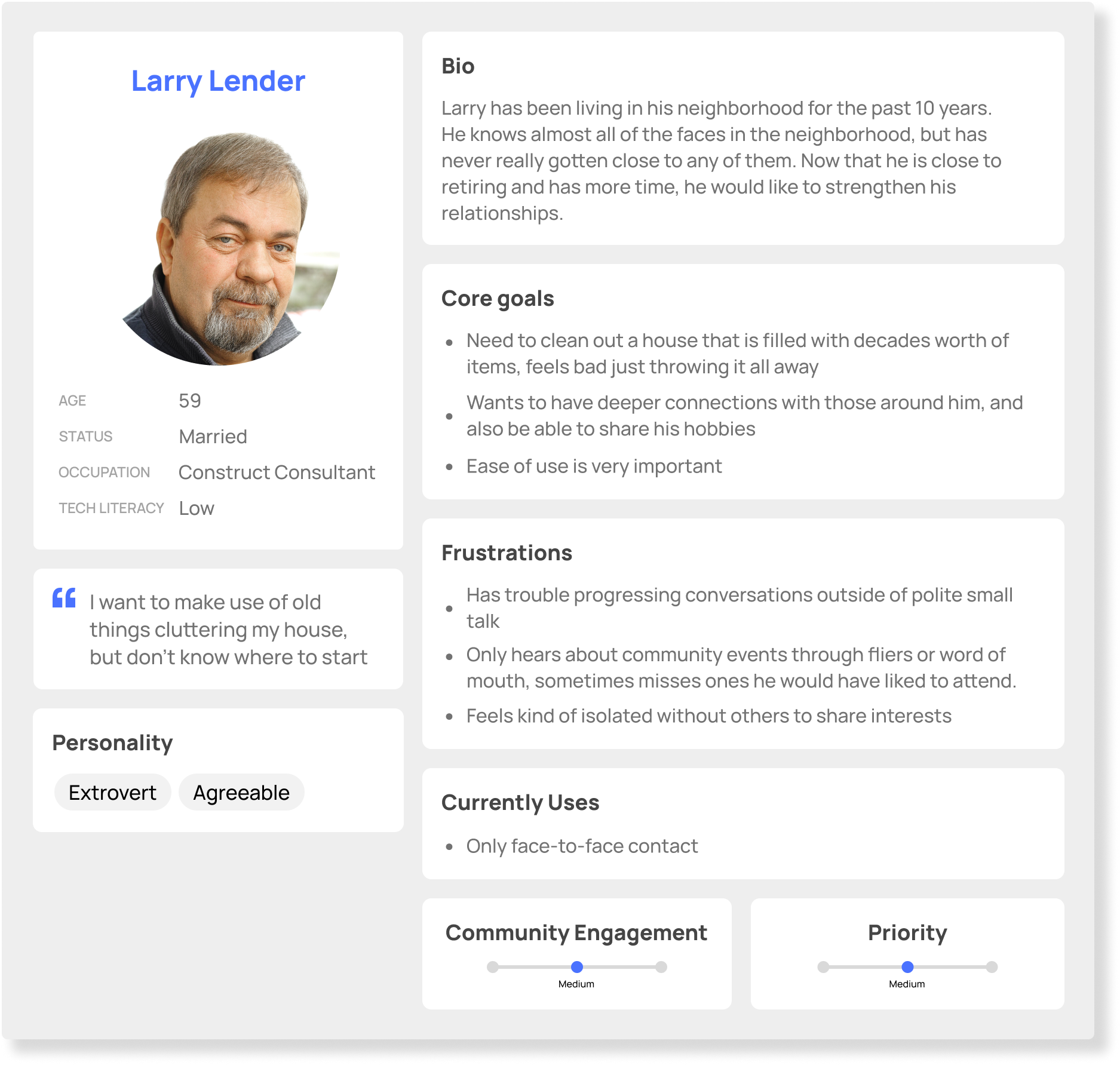 Defining the personas helped me propose user-centric solutions and define of their goals and problems throughout the design process.