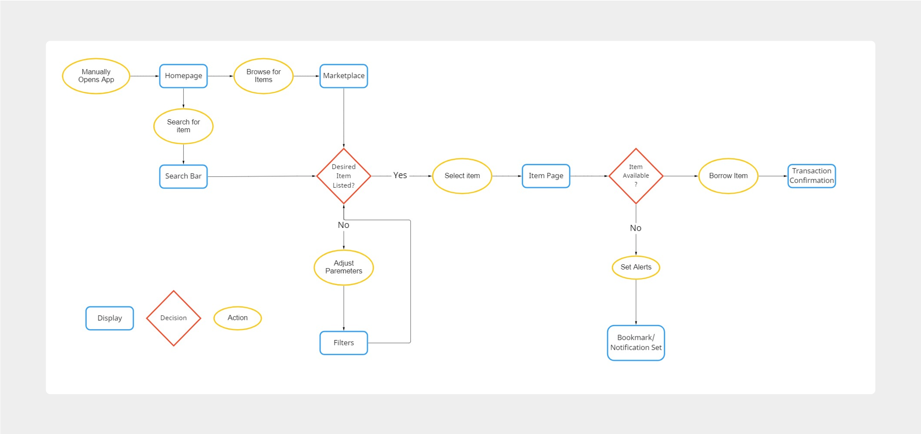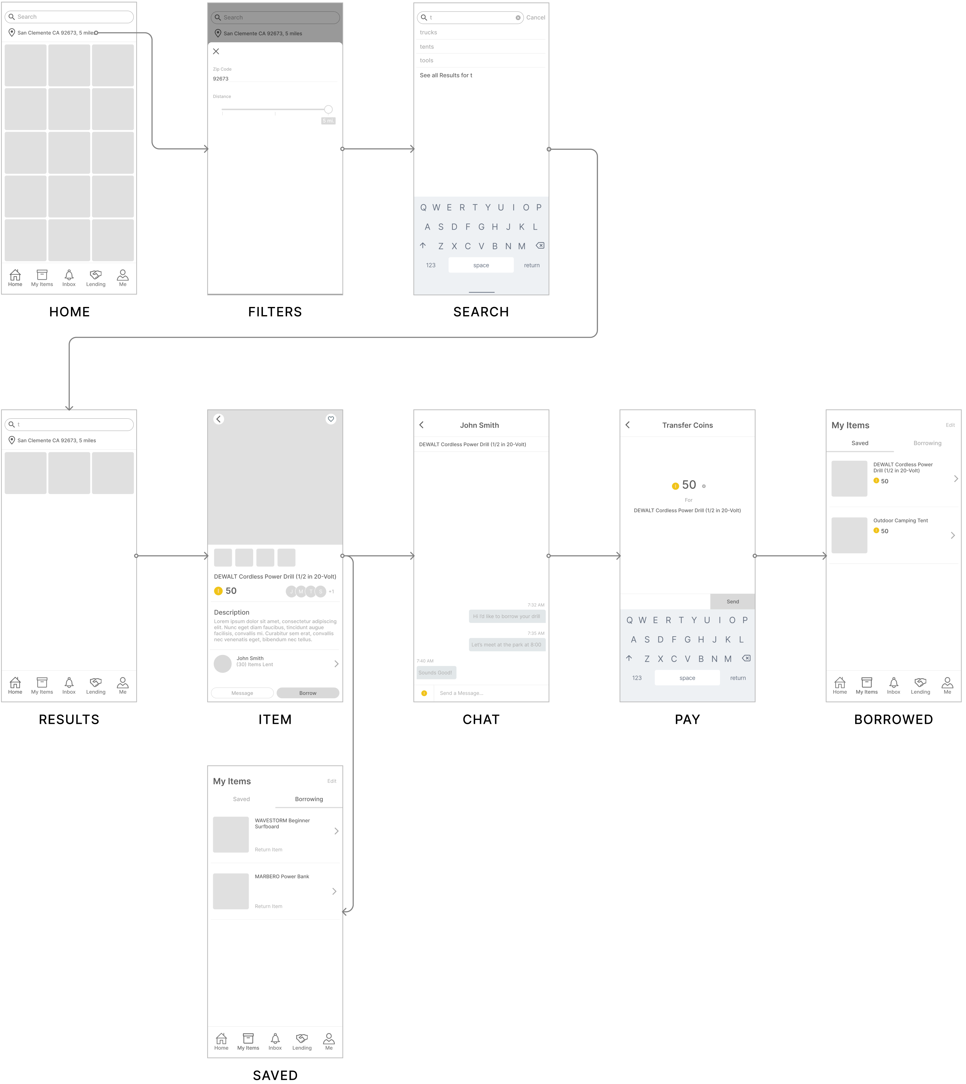 Participants were given various scenarios to complete such as borrowing an item or adding a listing. I observed their actions and asked follow-up questions to explore their reasoning. This combined with feedback from my mentor allowed me to iterate my design over the course of the project.